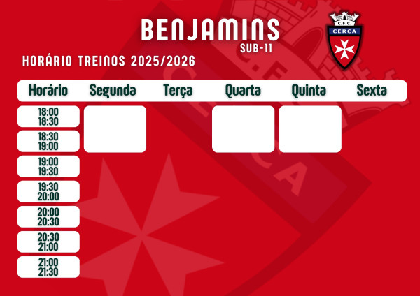 2ª, 4ª e 5ª feira - 19h00 - 20h00